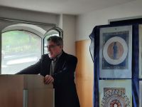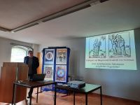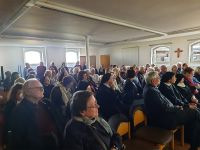 Die Benediktinerin Elisabeth von Schönau (1129‒1164/65) war eine Zeitgenossin der hl. Hildegard (1098‒1179) und galt gleichfalls als eine begnadete Seherin. Seit etwa 1155 leitete sie den Frauenkonvent des im Rheingau gelegenen Doppelklosters Schönau; ihr leiblicher Bruder Ekbert diente ihr als Sekretär und geistlicher Berater. Elisabeths Werke fanden im Mittelalter weit größere Verbreitung als diejenigen Hildegards, die vielen als schwer zugänglich erschienen und daher meist nur durch eine Kompilation des Eberbacher Mönchs Gebeno vermittelt wurden. Doch im erhaltenen Briefwechsel zwischen Hildegard und Elisabeth ist es letztere, die, von Misserfolgen verunsichert, bei der Älteren Rat und Hilfe sucht. In seinem beeindruckenden Vortrag hat Her Dr. Oberweis vor allem das persönliche Verhältnis zwischen den beiden Nonnen beleuchtet. Das Publikum, das den großen Gruppenraum der Abtei bis zum letzten Platz füllte, hat die Ausführungen begeistert aufgenommen.